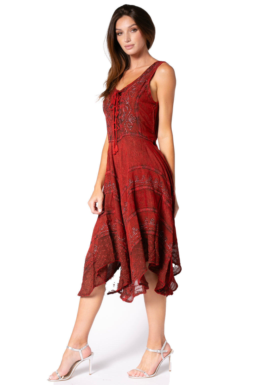 Sakkas' stonewashed rayon dresses feature delicate embroidery, beautiful rich colors and easy comfortable style. Enjoy wearing a flattering feminine dress without sacrificing comfort!