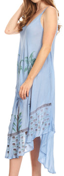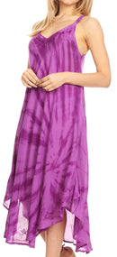 CASUAL FAVORITE: Nila, a one of a kind summer dress! This stunning and unique dress comes with double spaghetti straps, V-neck and a circle high-low hem, lots of fullness at bottom and simple details. A very flattering style that will make you look gorgeous! Ideal for casual wear, going to the beach and gatherings. This unique collection features different dying techniques, batik print and block printing, creating a one of a kind garment.
