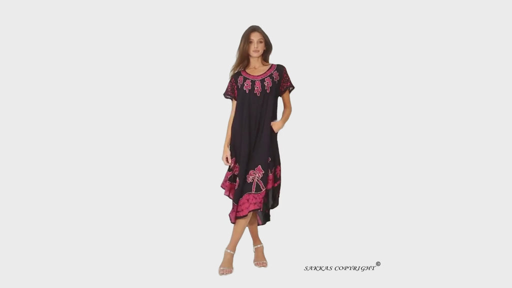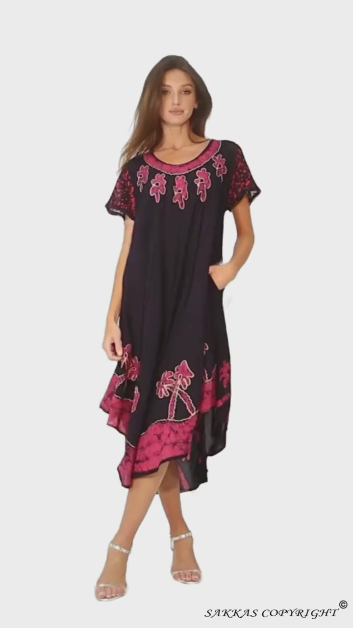 Lightweight rayon fabric and relaxed fit makes this dress perfect for casual wear or a swimsuit cover up.