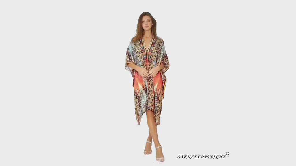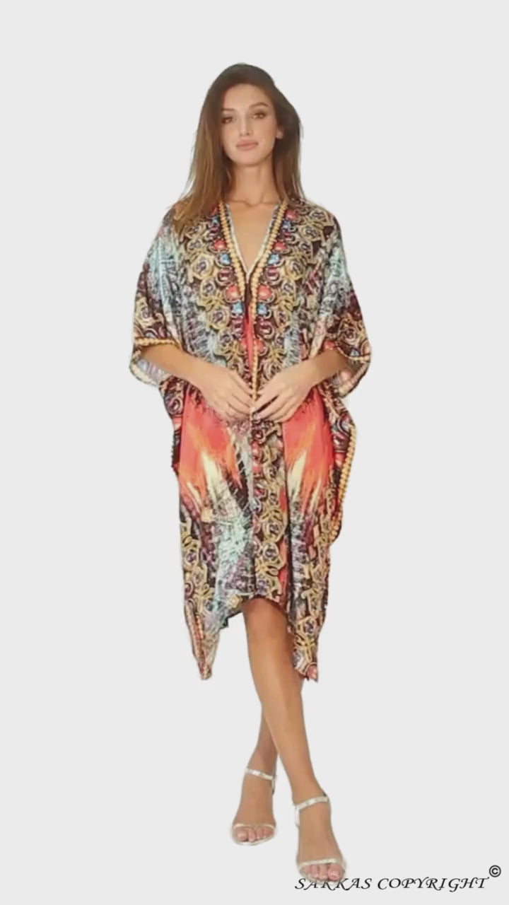 -This kaftan / Caftan top is super light, easy to wear and care, comes with fine rhinestones at neck. Flattering relaxed fit, this top is perfect for casual wear, versatile!